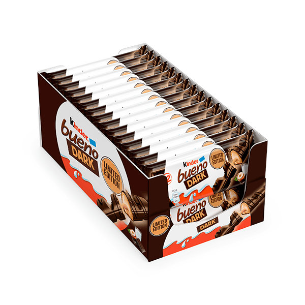 Formato: Contiene 30 unidades de Kinder Bueno Dark, cada una con dos barritas envueltas individualmente.