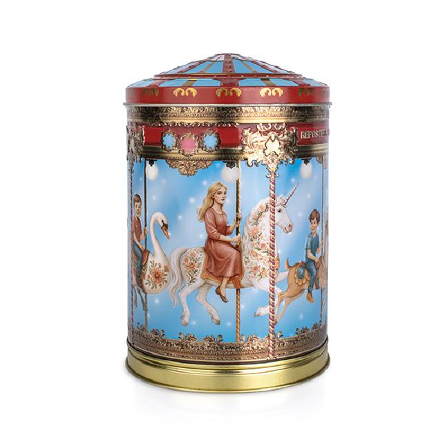Formato: Caja metálica con forma de carrusel con 230 g de bombones surtidos