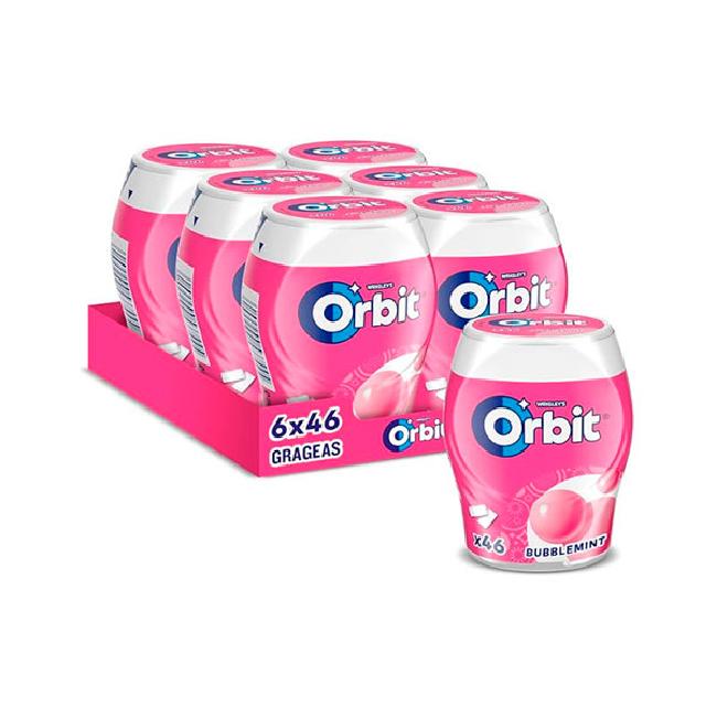 Disfruta del chicle sin azúcar con sabor a frutas y menta de Orbit, que te proporcionará una sensación de frescura y limpieza en tu boca.