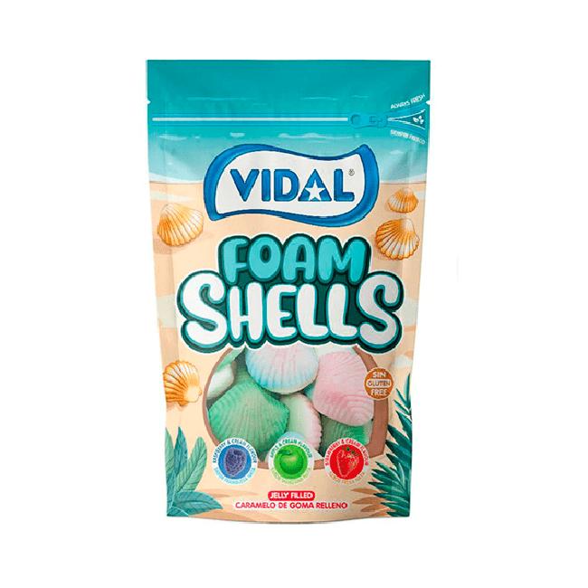 Vidal Almejas Rellenas Doypack con Autocierre Descubre las nuevas Rellenolas Foam Shells de Vidal, una divertida golosina con forma de almeja que combina una textura esponjosa con sabor nata y un relleno líquido afrutado que estalla en la boca. Cada unidad es un bocado doblemente placentero, ideal para disfrutar en cualquier momento gracias a su práctico formato con cierre zip. Sabor: Manzana, fresa y frambuesa Formato: 10 bolsas con autocierre de 180 g, aproximadamente 21 unidades por bolsa.