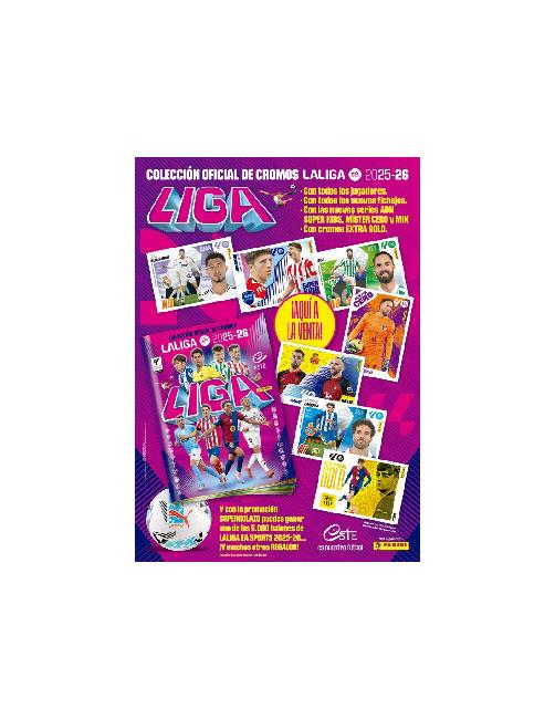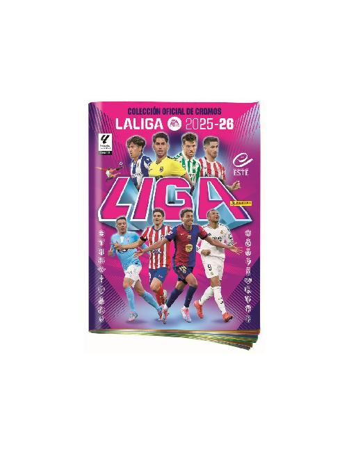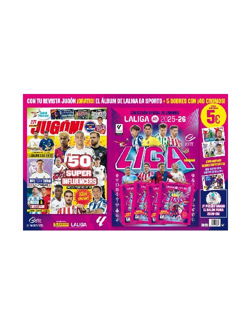 Pack de lanzamiento de la colección oficial de cromos de fútbol Liga Este de Panini de la temporada 2025-2026. El pack se compone de 1 álbum + 1 revista Jugón nº 221 + 5 sobres con 40 cromos.