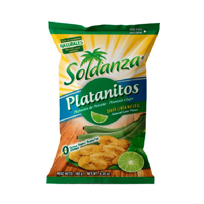 Descubre la deliciosa combinación de plátanos verdes con un toque cítrico natural de limón. Soldanza Platanitos Lima/Limón es un snack crujiente y sabroso, elaborado cuidadosamente para ofrecer un auténtico sabor tropical.
